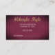 Perfect for a stylist, beautician, event planner, interior decorator, and many other professions, this business card features your initials in large, gold script, with your business name in white superimposed on it. The background is dark, textured burgundy with a "spotlight effect," highlighting the center. Very elegant and professional-looking! The back is also textured burgundy, with space for more information, appointments, etc.