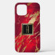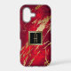 This bright phone case in red and gold almost seems to glow! It features your monogram in gold at the center of a black square banner which is double lined in shiny gold. The banner is placed on a vivid gradient red background that looks as if it has been splattered with gold metallic paint. Unique and very attractive! *Please note - the metallic look is simulated, and the case does not contain metallic paint, but only the image.