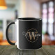 Gold Monogram Script Name Elegant Black Mug