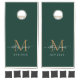 Gold Monogram Script Names Newlywed Dark Green Cornhole Set