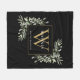 Gold Monogram Watercolor Greenery Black Fleece Blanket