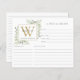 Gold Monogram Watercolor Greenery Recipe Sheet