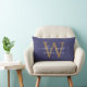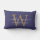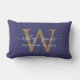 Gold Monogram Wedding Date Navy Blue Lumbar Pillow