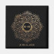 Custom, elegant gold boho wedding favor magnets- Elegant, bohemian style. Beautiful floral mandala that looks like gold foil on a black background. Monogrammed couple's initials in gold hue, are centered on a black and shiny gold effect circle. Customized wedding date printed below in gold color. Note: All images are printed. Not actual metal or foil. Makes a chic keepsake favor for wedding guests. We have matching gold mandala wedding decor, as well as other custom wedding favor magnets as well in our Zazzle.com/angela65* shop.
