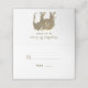 Simple, elegant, minimalist white wedding place card in combination with gold foil monogram elephant - symbol of love, fertility and good luck.