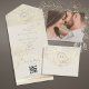 Announcing our exquisite all-in-one wedding invitation, a fusion of elegance and vintage charm. Delicately crafted in ivory cream and adorned with shimmering gold foil accents, this invitation exudes sophistication. Featuring a bespoke monogram showcasing the initials of the bride and groom, intertwined in everlasting union. Enhanced with bohemian gilded floral lace and a custom picture capturing the essence of your love story. Complete with our website and QR code for seamless RSVP and additional details. Let this invitation be the prelude to your timeless celebration, where love and beauty intertwine.