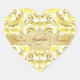 Gold Monogram White Damask Heart Sticker