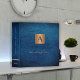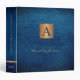 Luxury vintage monogrammed office or school work organizer binder featuring a faux gold copper metallic square and dividers over a stylish vintage navy blue faux leather look (printed) background. ++++++++++++++ Suitable for small business, home office, corporate or independent business professionals, personal branding or stylists specialists, managers, teachers, students.