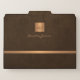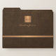 Luxury classy exclusive looking office or personal monogrammed file folders featuring a faux copper metallic gold glitter square with your monogram name initials and a sparkling stripe over a stylish dark brown faux leather background. ++++++++++++++ Suitable for small business, corporate or independent business professionals, personal branding or stylists specialists, makeup artists or beauty salons, boutique or store managers. +++++++++++++++ Please note that the leather texture and glitter sparkle effects are PRINTED.