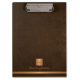 Luxury exclusive looking office or personal monogrammed clipboard featuring a faux copper metallic gold glitter square with your monogram name initials and a sparkling stripe over a stylish dark brown faux leather background. ++++++++++++++ Suitable for small business, corporate or independent business professionals, personal branding or stylists specialists, makeup artists or beauty salons, boutique or store managers. +++++++++++++++ Please note that the leather texture and glitter sparkle effects are PRINTED.