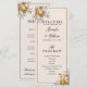 Elegant "Wedding Party Program & Menu" design with a sophisticated script typography, a vintage floral bouquet and custom text.