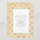 Golden nautical wedding invitation with shell and chevron patterns customizable to your event specifics.