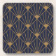 Gold Navy Blue Art Deco Fan Pattern Beverage Coaster