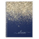 Navy Blue and Gold Sparkle Glitter Script Monogram Name Spiral Notebook Planner. This makes the perfect sweet 16 birthday, wedding, bridal shower, anniversary, baby shower or bachelorette party gift for someone that loves glam luxury and chic styles.