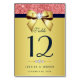Elegant custom gold, coral navy table number cards for any event with a beautiful glittery coral printed image sequins jewels, gems, glitter pattern, cute, sophisticated shiny printed golden bow and navy ribbon and pretty digital diamond bling jewel on a gold gradient background. PLEASE NOTE: These are flat printed graphics - not real bow, diamond or sequins. If you need assistance customizing your product please contact me through my store. I will be happy to help.