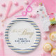 This modern baby shower party plate features a gold glitter & navy typography and stripes. More matching items available in my shop BaraBomDesign. (invitation, thank you card, thank you sticker and more)