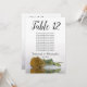 These beautiful table number cards will make it easy for your guests to find their seats at your wedding reception. They feature a simple yet elegant design with script calligraphy lettering and a single long-stemmed gold ochre or mustard yellow colored rose lying on its side reflecting in water. The card includes a seating chart with 10 names. There is also space for the couple's names and wedding date. This card is available in a variety of sizes and is larger than our standard table number cards.