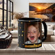 Custom photo mug in black with gold confetti dots and your own favorite photos and texts. If you do not want text, you can delete the labels and text fields. Nice to treat yourself or as a gift for Christmas, Mother's Day or a birthday.