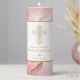Gold Ornate Cross Peach Pink Girl Baptism Pillar Candle