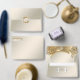 Plain white envelopes are included with paper invitations and will come to fit the invitation size you select. If you don’t need the envelopes, you may choose to not receive them by selecting the dropdown below "Envelopes" and choosing "None." If you’d like to have a design on your envelopes, you can browse all of these available envelopes to find the design that complements your Gold Ornate Floral Wedding Invitation.