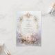 Invite your guests into a world of opulent romance and ethereal beauty with this exquisite wedding invitation. The design features a delicate, thin gold oval frame set against a luminous soft white and lavender-pink backdrop. The frame is magnificently adorned with intricate gold baroque scrollwork and highlighted by various small gemstone accents and faux pearls, instantly conveying antique prestige. Lush clusters of velvety blush pink roses and delicate filler flowers cascade around the bottom, interwoven with shimmering metallic gold leaves and sprigs. The entire aesthetic is airy, sophisticated, and perfectly sets the stage for a luxurious, high-end, or destination wedding. This invitation card is ideally suited for a luxury baroque-themed wedding, a high-end formal engagement celebration, or an elegant anniversary party. It would also perfectly suit a sophisticated bridal shower or a serene, elegant vow renewal ceremony. The card's captivating blend of ornate gold accents and ethereal florals ensures it is versatile for any solemn ceremony, corporate gala, or refined birthday announcement.