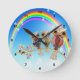 Whimsical colorful clock with numbers and a cute and beautiful colorful print of three gold owls with digital jewels and diamonds on a gold branch with a pretty rainbow and bubbles background. A stylish, chic, girly fashionable gift for women, teenage girls and kids of all ages. Please note: All products on the Zazzle website have flat printed images. If you need any assistance customizing your product please contact me through my store and I will be happy to help.