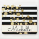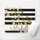 Gold Paint Splatter Black White Stripes Monogram Mouse Pad
