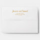 Indian wedding invitation envelope with traditional paisley design in gold. Recipient & return address mailing envelope, calligraphy addressing.