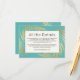 This modern island-style wedding enclosure card is designed to provide your wedding guests with important information surrounding your big event. It features a swaying tropical palm fronds in shimmering faux gold over a contrasting Caribbean blue background. Sample text is included in the easy-to-use text template that you can personalize with your desired information.