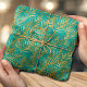 Tissue paper features tropical gold palm tree fronds on a turquoise background (or any color you choose). MATCHING gift bags, ribbons and wrapping paper in our store.