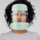 This stylish face shield features a light turquoise blue/mint green background with palm tree leaves in faux gold. Personalize it for your needs. You can find matching products at my store.