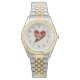 This wristwatch is a unique gift for anyone who loves their dog or cat or someone who devotes their life to the care of animals. The center design features a glittery gold paw print inside a beautiful bright red heart. The silver and gold metal of the watch compliments the golden color of the animal print.