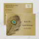 gold peacock wedding rsvp invitation postcard