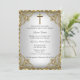 Gold Pearl Damask & Cross Baptism/Christening Invitation