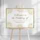 Make a stunning first impression with this landscape-oriented "Welcome to the Wedding of" sign featuring luxurious gold peony line art illustrations framing each corner. Elegant gold calligraphy presents the couple's names and wedding date in a wide, eye-catching format perfect for easel display at your venue entrance. Coordinates with the full gold peony sign collection. All text is fully customizable.