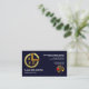 A dark blue cover is accentuated by a faux gold abstract mathematical symbols design (perpendicular to circumference). Below this motif are your prestigious name and job title. Towards the top corner are the business name and contact details. Just below this is a slogan caption "understanding math as simple as ABC", change the slogan caption to suit your service needs. To compliment the slogan, is a gold ABC logo you can use.