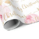Christmas gift wrapping paper feature custom your own gold modern "Merry Christmas" script on blush pink watercolor floral background.
