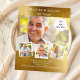 Create your own unique photo collage. Use four, 4 of your favorite photos. Personalize and add a name and party details. A faux gold looking background, white text.