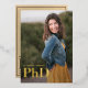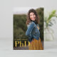 A photo PhD graduation announcement that includes your name, class year, a customizable message, and more. The front of the announcement shows a vertical photo with your words in gold foil. The other side has a gold tone (non-foil) background with black text. Simply swap out the photo, customize the words, add the announcement to your cart, and let everyone know that you accomplished something big.
