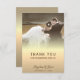 Simple, minimalist, transparent gold overlay wedding thank you card with modern, elegant, shiny back side and custom photo of the couple.
