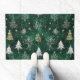 Gold Pine trees Silver Snowflakes Hunter Green Doormat