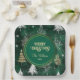 Gold Pine trees Silver Snowflakes Hunter Green Paper Plates