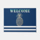 Gold Pineapple Nautical Navy Blue Striped Doormat