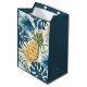 Gold pineapple palm foliage green blue tropical medium gift bag
