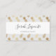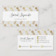A tropical pattern of pineapples covered in a shiny gold texture. The pineapples are placed on a very light grey background. They are drawn with a mosaic technique for a modern look. This print has all the feelings of a tropical resort, but the subtle gold look gives it a classy, chic feel. The design is repeated on the back of the card. The front features a customizable cursive script font for your name in black, and a place where you can add your job title. This card works well for any professional - from consultants, to home decorators and social media experts. The back features social media icons as well as contact icons in a gold foil texture, and they are all customizable and can be moved around.