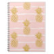 Gold Pineapple, Striped Summer Background. Notebook