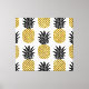 Gold Pineapples: Hand-Drawn White Seamless. Canvas Print