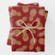 Gold Pineapples on Deep Red Wrapping Paper Sheets