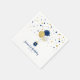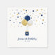 Add a personal touch to your special day with this cute boy Birthday Paper Napkin! This design features stylish balloons and a mason jar with confetti in gold & navy blue. You can customize the text to any event or different age. More matching invitations and party supplies are available in my shop BaraBomDesign.