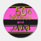 50 & Fabulous! This design is eye catching, bold, bright, and designed as a gift or party favor for someone special celebrating a 50th birthday party. It centers around the text "50 & fabulous" in a shiny glittering golden color with a black outline. This is set against a gradient pink backdrop and has a 3 dimensional feel. This glam design also has 5 beautiful black and gold butterflies, with a pretty pink background. In the center of this design is a name in complementary text, which is customizable so that you can add the name or other custom text as you prefer. This is a vibrant, eye catching, stylish and glam 50th birthday design in pink, gold, and black to celebrate being fifty and fabulous.